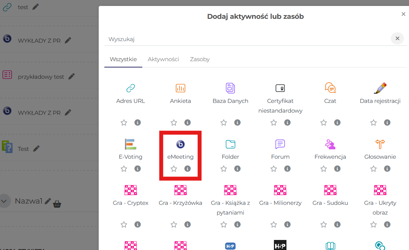 2. Dodawanie aktywności