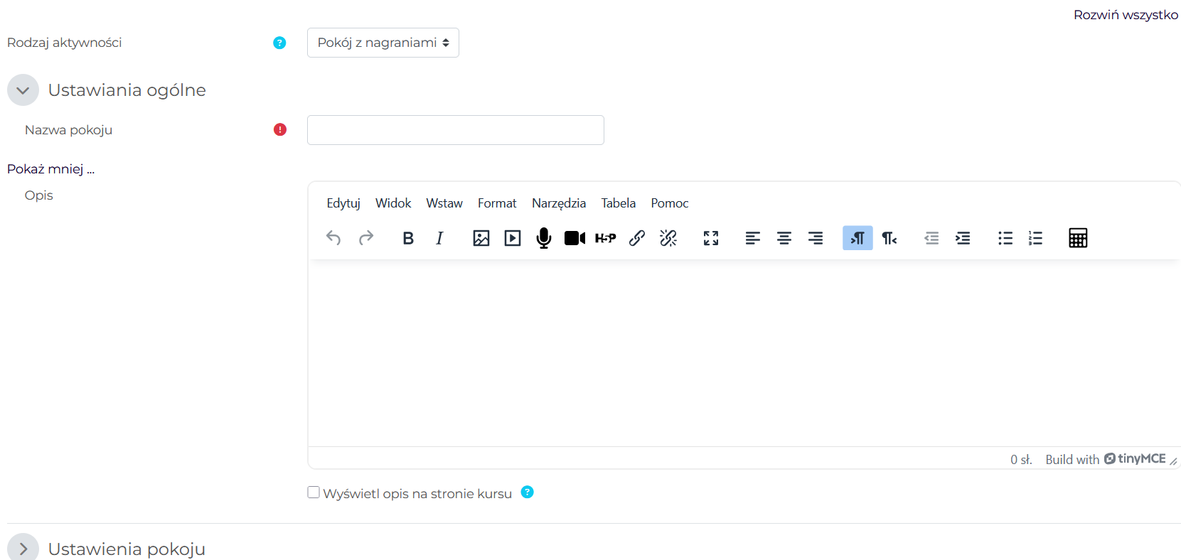 3.2. Ustawienia aktywności pokoju