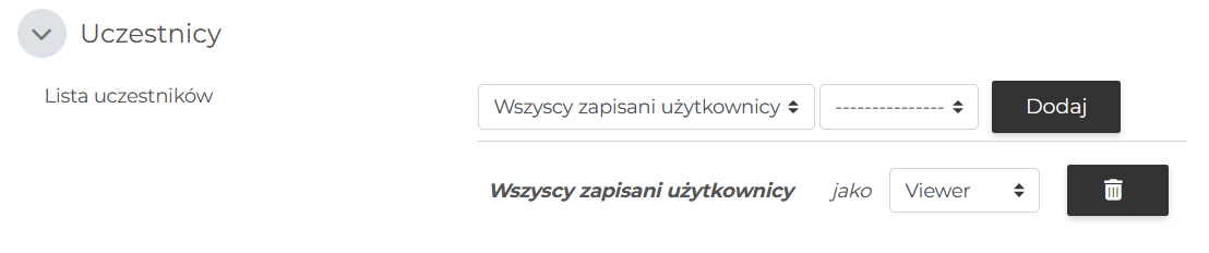 - Rola – wideokonferencja dostępna tylko dla uczestników o określonej roli.