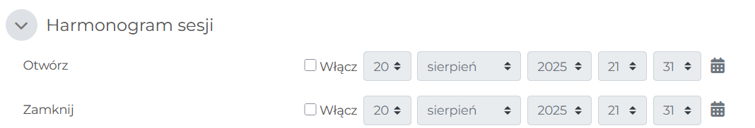 - Określenie daty otwarcia / zamknięcia dołączenia do sesji, która pojawi się w kalendarzu Moodle,
