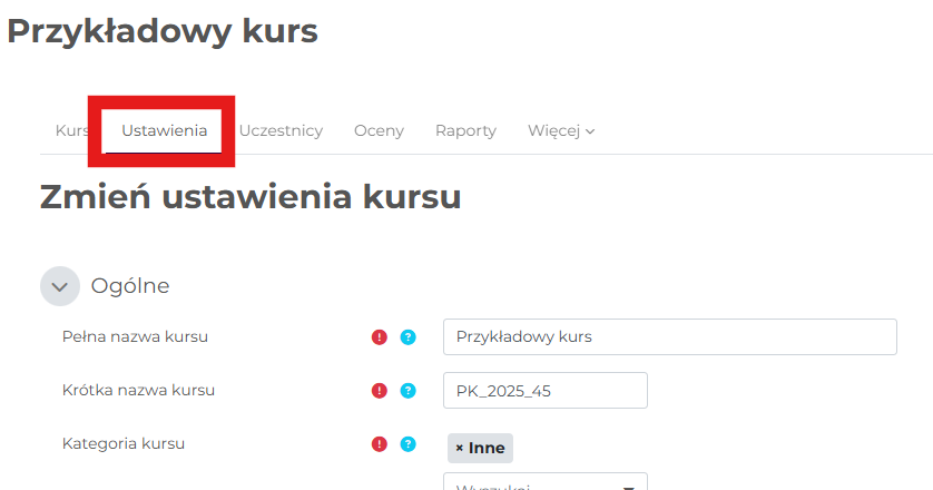 Włączenie opcji osobne grupy dla całego kursu w ustawieniach kursu: