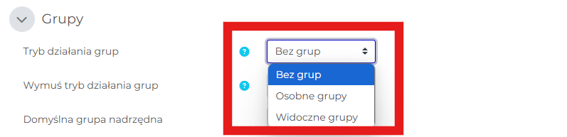 2. W sekcji „Grupy” wybrać opcje dla pola „Tryb działania grup”.