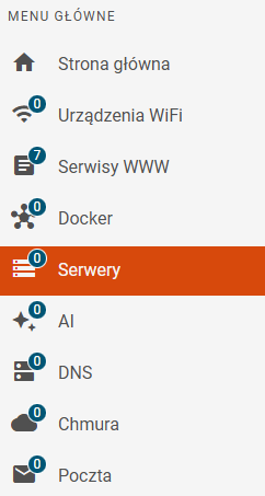 W celu stworzenia wniosku o Serwer należy zalogować się do systemu eZasoby następnie z meny po lewej stronie wybrać Serwery.