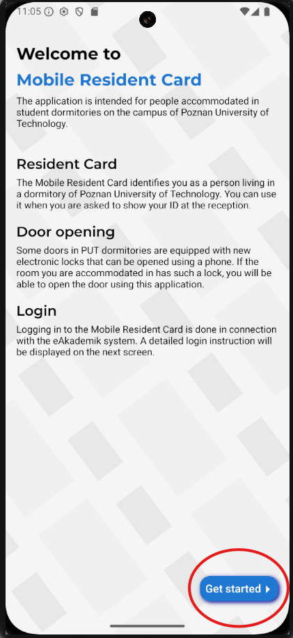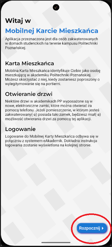 Podczas pierwszego uruchomienia aplikacji zostanie wyświetlony ekran powitalny.