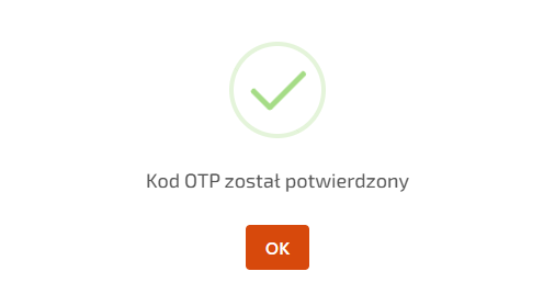 Po podaniu prawidłowego kodu wyświetli się informacja Kod OTP został potwierdzony i zostaniemy zalogowani w aplikacji mobilnej.