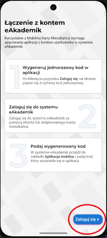 Na następnym ekranie można zapoznać się z instrukcją logowania, po czym należy kliknąć przycisk Zaloguj się znajdujący się na dole: