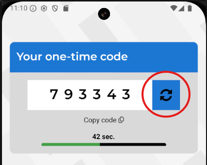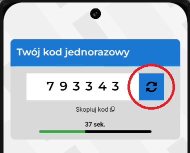 Po kliknięciu zostanie wyświetlony kod wraz z jego pozostałym czasem ważności. W momencie kiedy upłynie połowa czasu ważności kodu, możliwe będzie wygenerowanie nowego kodu: