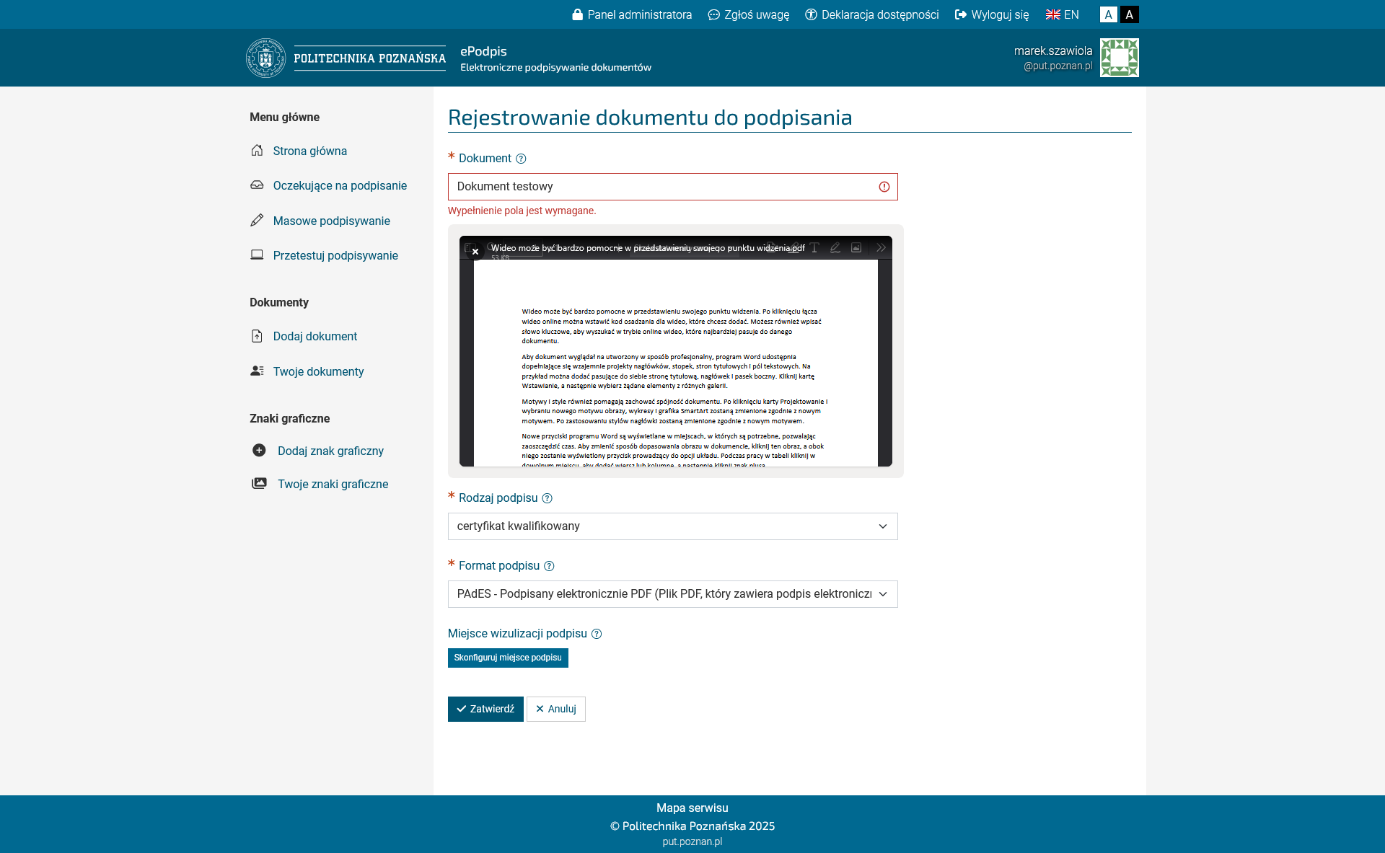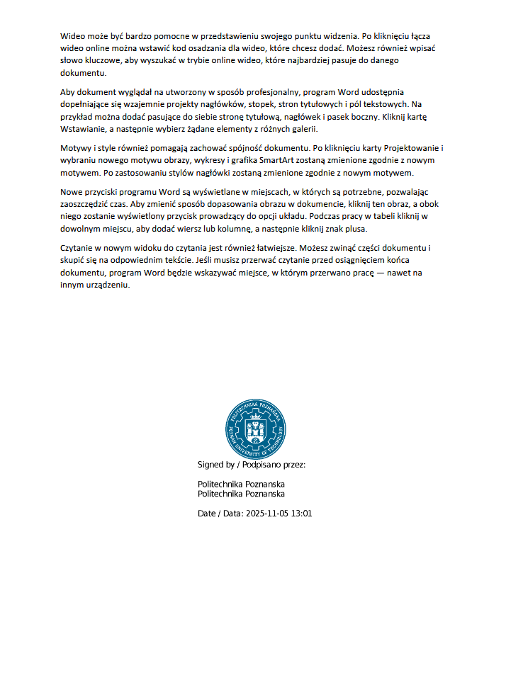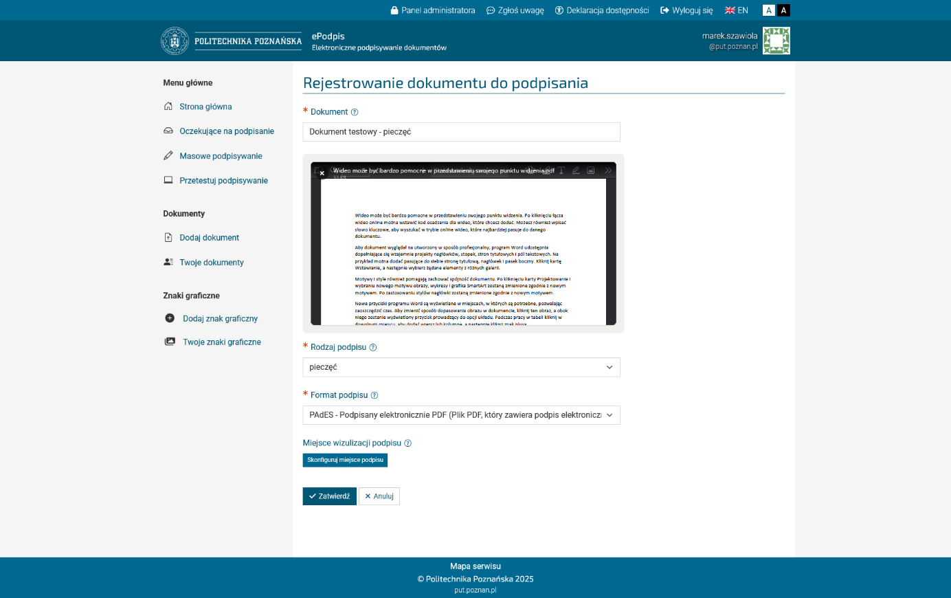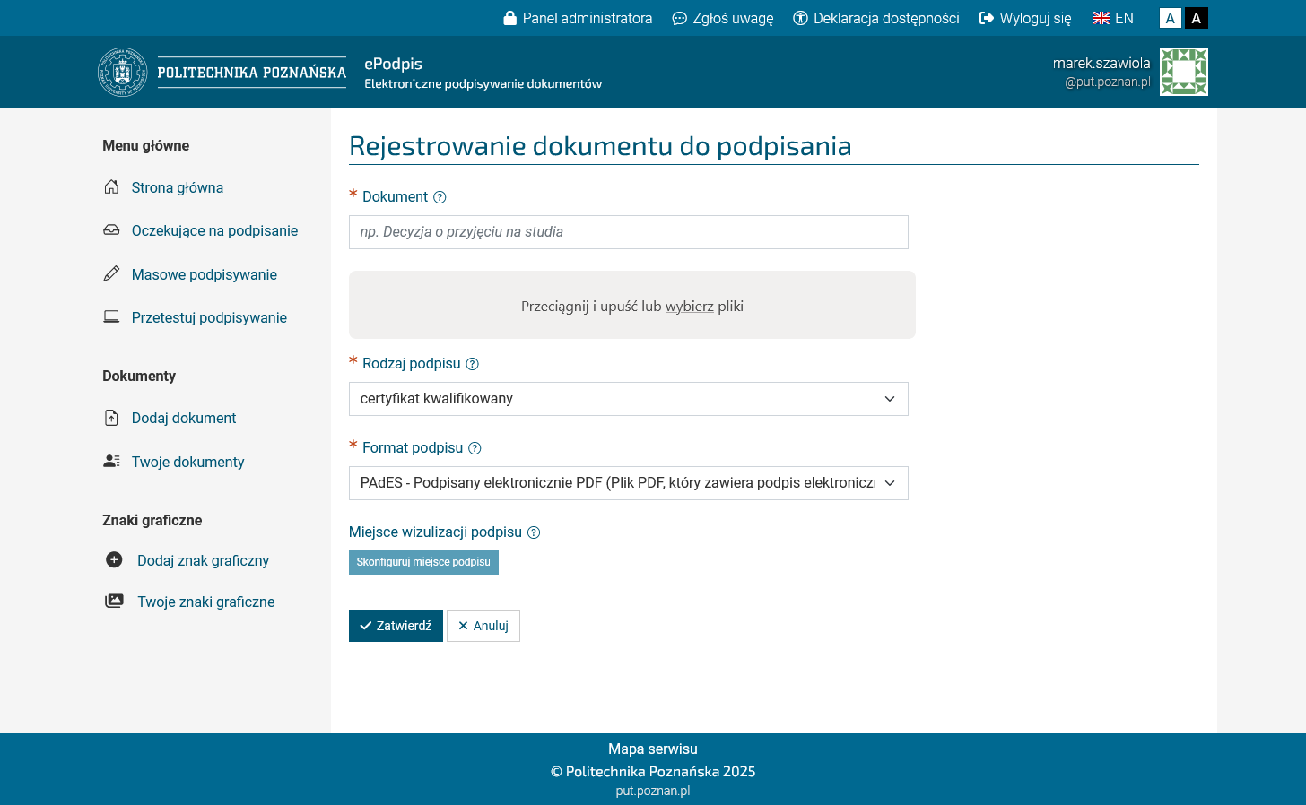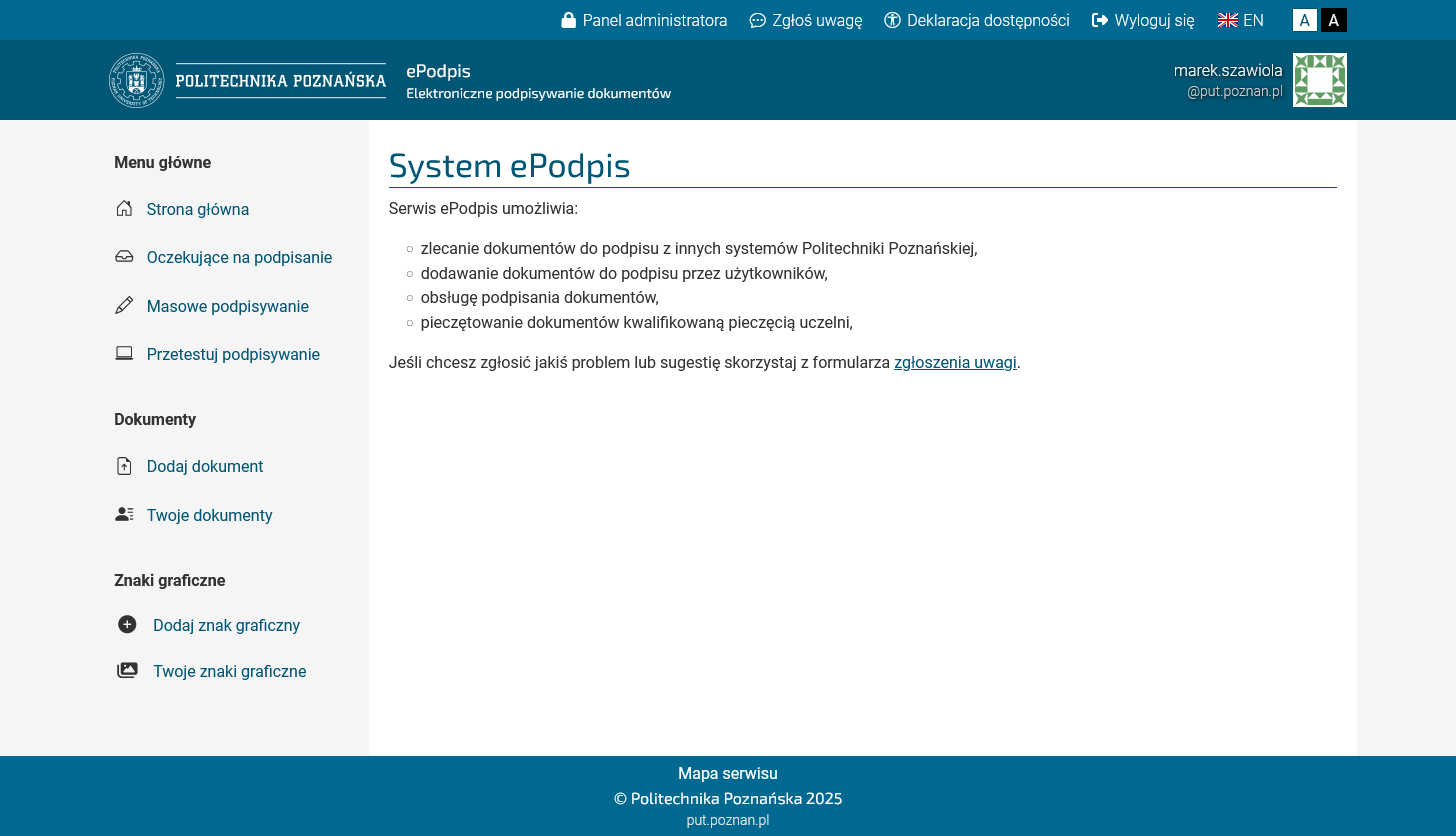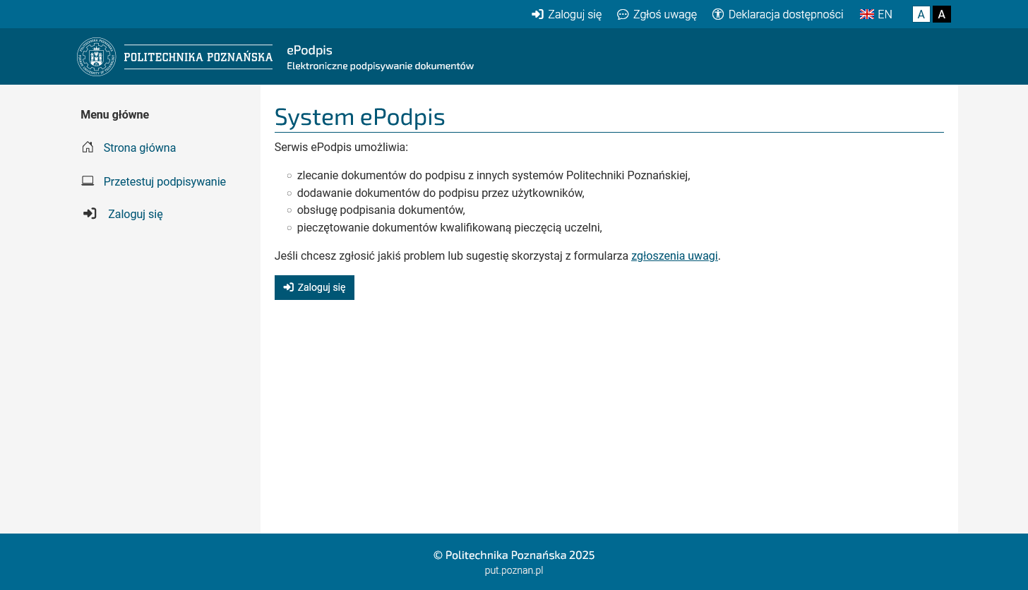 Politechnika Poznańska umożliwia elektroniczne podpisywanie dokumentów za pomocą systemu ePodpis 2 (nazywany dalej – ePodpis)
