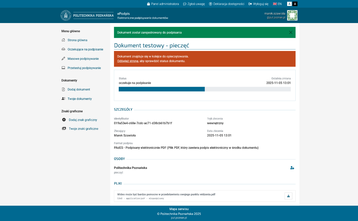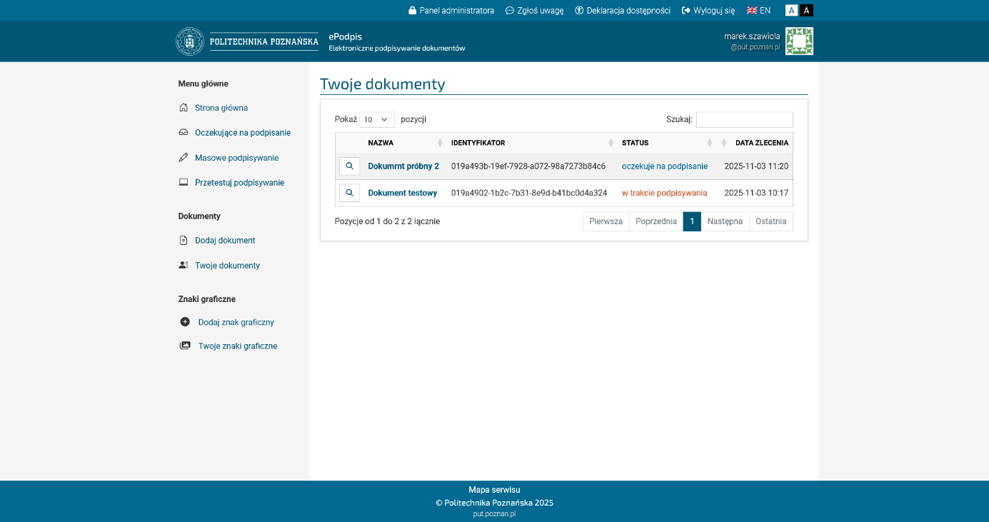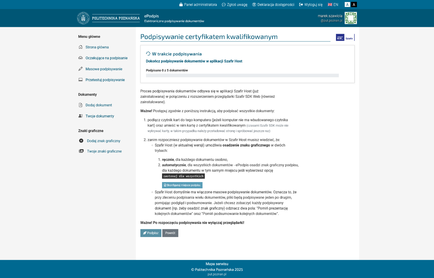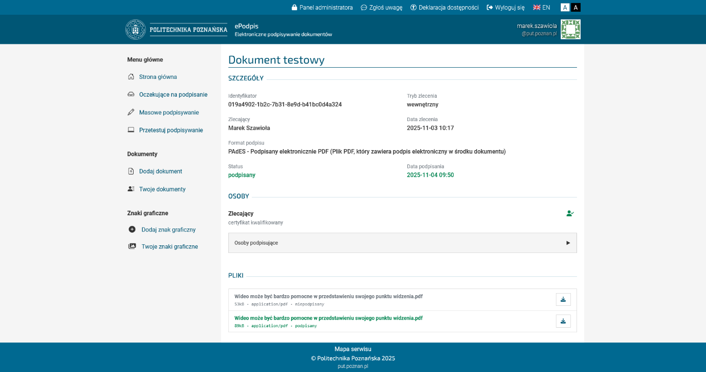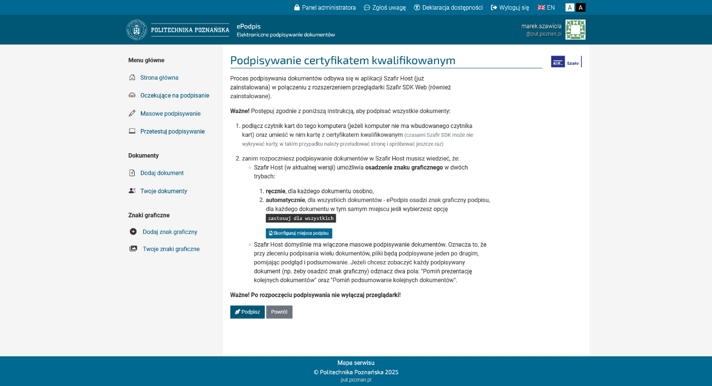 Politechnika Poznańska umożliwia elektroniczne podpisywanie dokumentów za pomocą systemu ePodpis 2 (nazywany dalej – ePodpis)