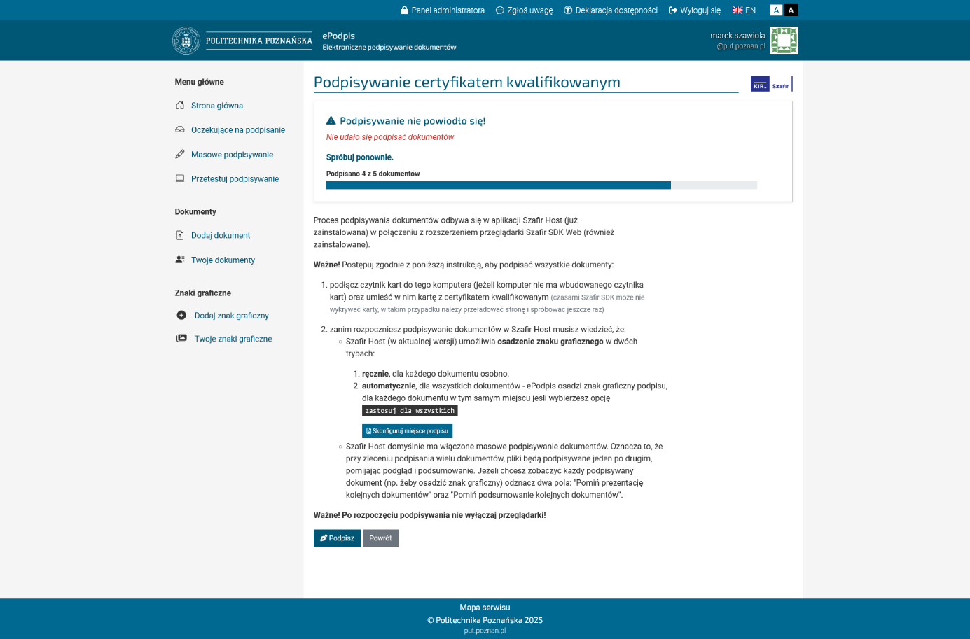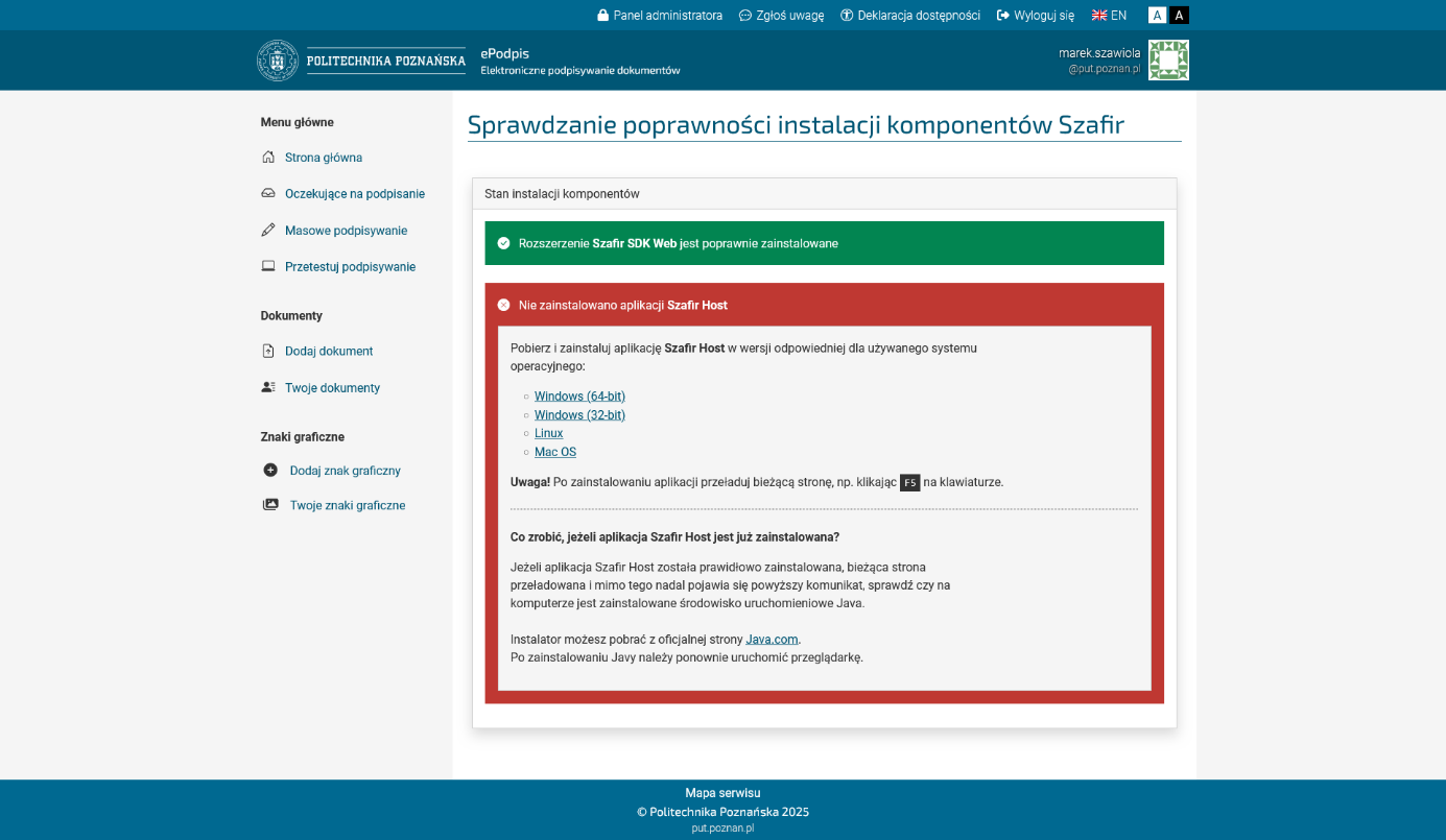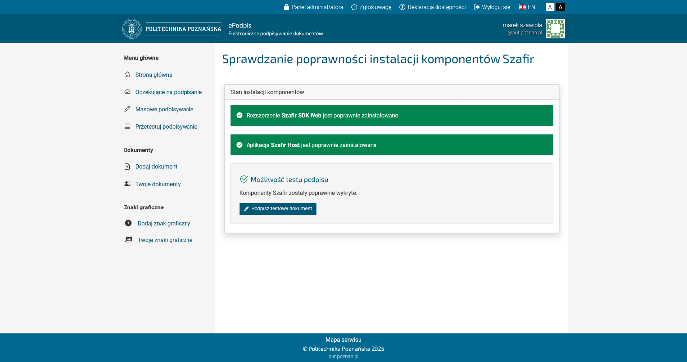 Przetestuj podpisywanie (użytkownik zalogowany)