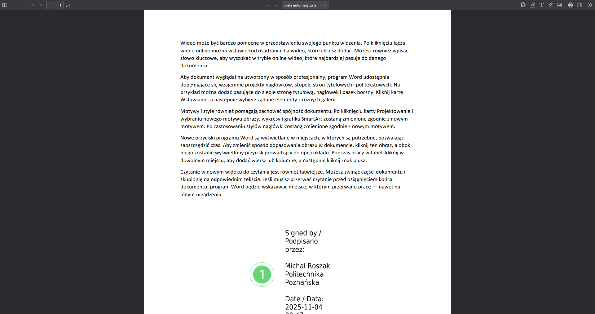 1. PAdES – Podpisany elektronicznie PDF (Plik PDF, który zawiera podpis elektroniczny w środku dokumentu)