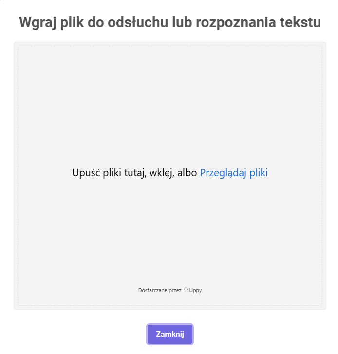 Otworzy się okno za pomocą którego wgramy plik. W tym celu klikamy Przeglądaj pliki i wybierz plik z dysku.